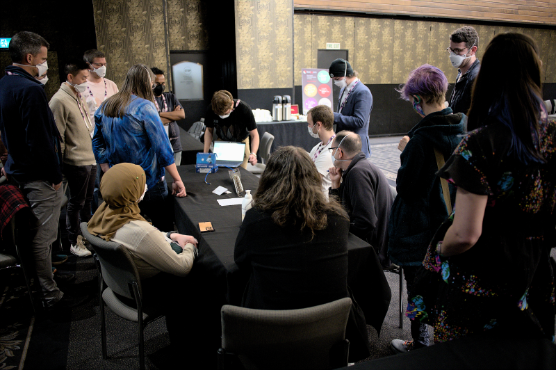 SpaceOps NZ Engineer Chris Bull’s presentation on the Friday drew so much interest that he had to bring some radio hardware in on the Sunday to demonstrate GNU Radio in action (as pictured).